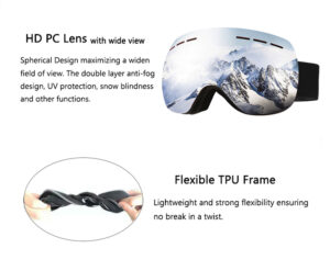 √ All goggles with 100% UV protection coating. It greatly prevents scorching to eyes by the ultraviolet light or the strong sunshine reflection on the snowfield.